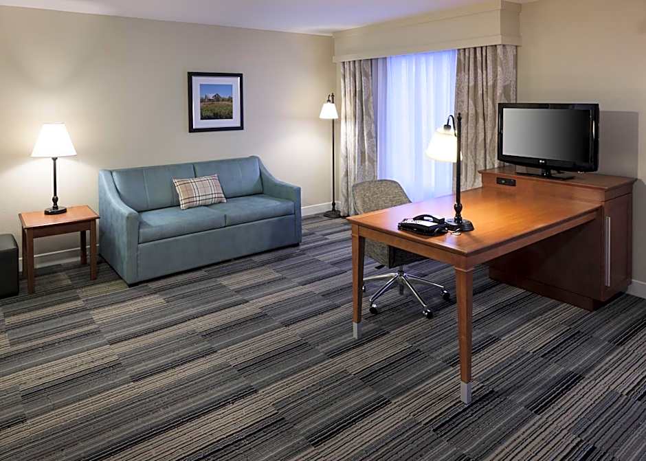 Spacious studio features a microwave, refrigerator and sitting area with a sofa bed and a 32-inch flat-screen TV.